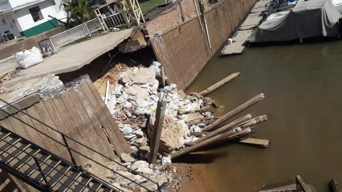 Se trata de parte del muro de contención ubicado en el Club Yacht Corrientes.