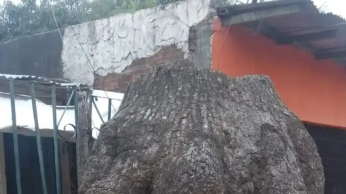 Se trata del tronco de un palo borracho enorme que tomó toda la vereda e inclusive genera problemas para el frente de una casa.
