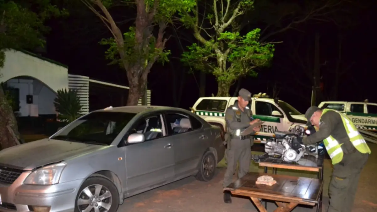 Mediante esa verificación los gendarmes constataron que dentro del baúl transportaban dos motores de motocicletas y distintas partes (manubrio, tablero, óptica, carburador, amortiguadores, cuadro trasero, guardabarros, cableado y sistema de luces).