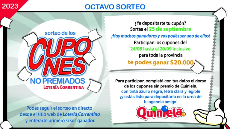 El 25 de septiembre se sortean los cupones no premiados de Lotería Correntina