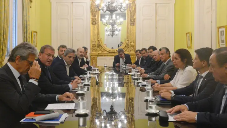 "Está claro que creemos en la libertad y a medida que vayamos teniendo resultados, todo el esfuerzo inicial va a significar una baja de impuestos", señaló Caputo durante el encuentro, tras lo cual remarcó que "la mitad del déficit está en las provincias" y que estas "tienen que entender que deben ser parte de la solución".