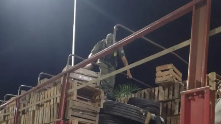 Al inspeccionar el vehículo, descubrieron, escondidos entre cajones de madera, 50 neumáticos de diferentes rodados sin aval legal.