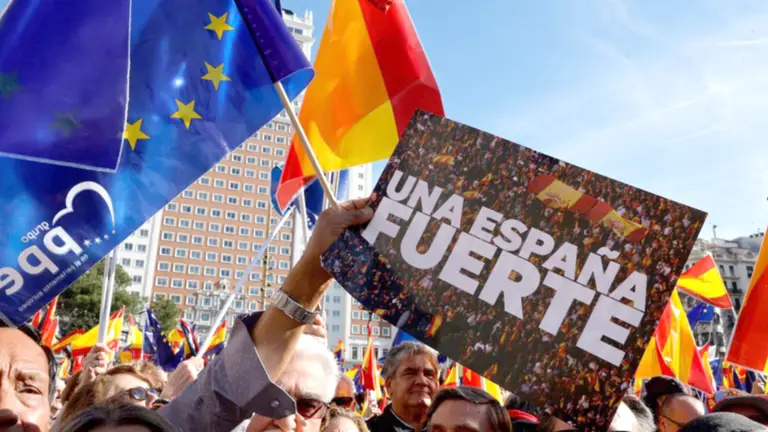 La convocatoria, que reunió a miles de banderas españolas y de la Unión Europea, tuvo como lema “Una España fuerte”.