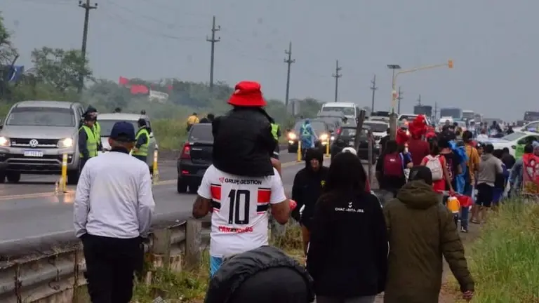 Miles de devotos de todo el país caminan bajo la lluvia para visitar al Gauchito Gil en la localidad correntina de Mercedes.