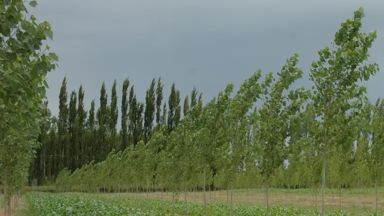 En los valles del norte de la Patagonia utilizan álamos y sauces como cortinas rompevientos para proteger diferentes cultivos –frutícolas, vitícolas, hortícolas, forrajeros– y forestaciones en macizo destinadas a la producción de madera y postes de calidad.