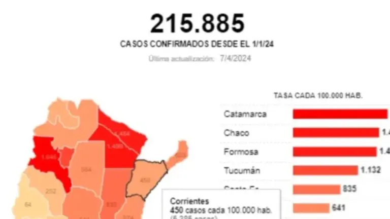 Confirman que Corrientes registró 5385 casos de dengue desde enero y hoy son 450