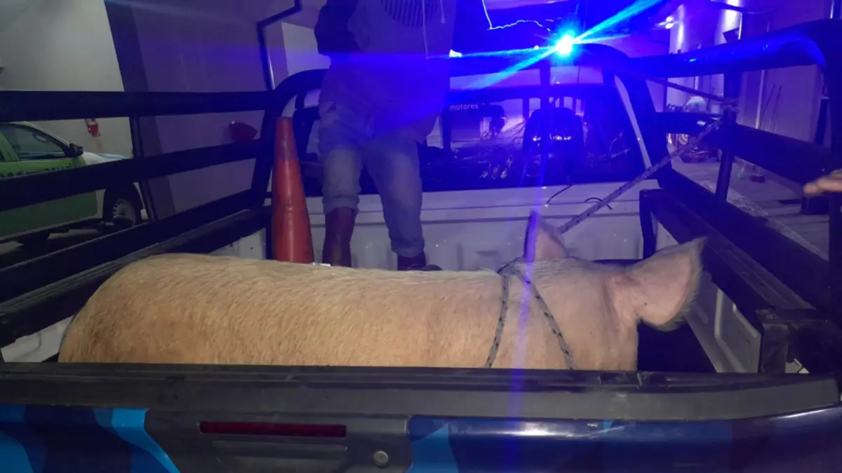 El implicado en el robo, al notar la presencia policial se dio a la fuga y abandonó al porcino.