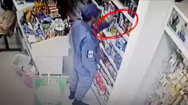 Un policía robó productos en una farmacia y el acto quedó grabado en las cámaras de seguridad del local.