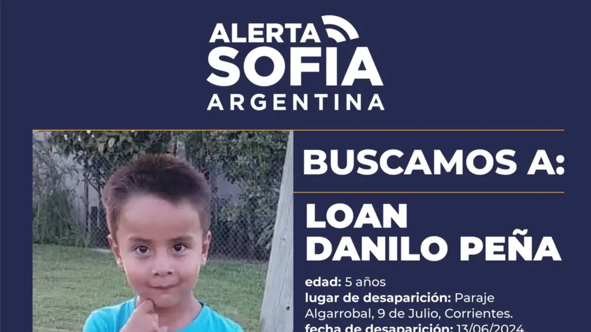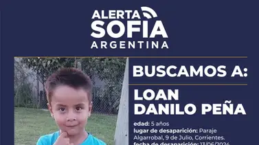 El Ministerio de Seguridad informó que activó el Programa Alerta Sofía para la búsqueda de Loan Danilo Peña, de 5 años de edad, quien desapareció ayer en el Paraje Algarrobal, 9 de Julio, provincia de Corrientes.
