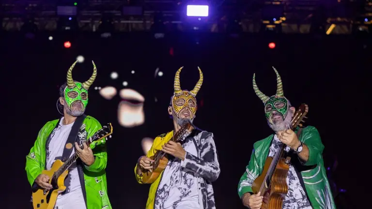 Más tarde, cuando el reloj marcaba aproximadamente la 1 de la madrugada, Los Tekis subieron al escenario y también iniciaron el show con una invocación. “He despertado, que tiemble la tierra que se asuste la vergüenza y que los cuerpos se enciendan. Mírenme bien, no ignoren mi llamado. Cuando aparezco no hay pena que aguante ni tristeza que resista. Despierten, yo decreto, ya no se duerme, solo se baila y se disfruta, porque ha llegado mi tiempo, el tiempo del carnaval”. Este decreto fue lanzado desde la pantalla gigante con la imagen de un bufón o diablo del carnaval diseñada con inteligencia artificial.