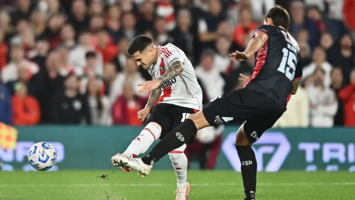 River volvió a acercarse 15 minutos después. El delantero Sebastián Driussi recibió desde el costado derecho, encaró hacia el medio y remató desde el borde del área, con un tiro bajo y cruzado que fue contenido por el arquero Marcos Ledesma.