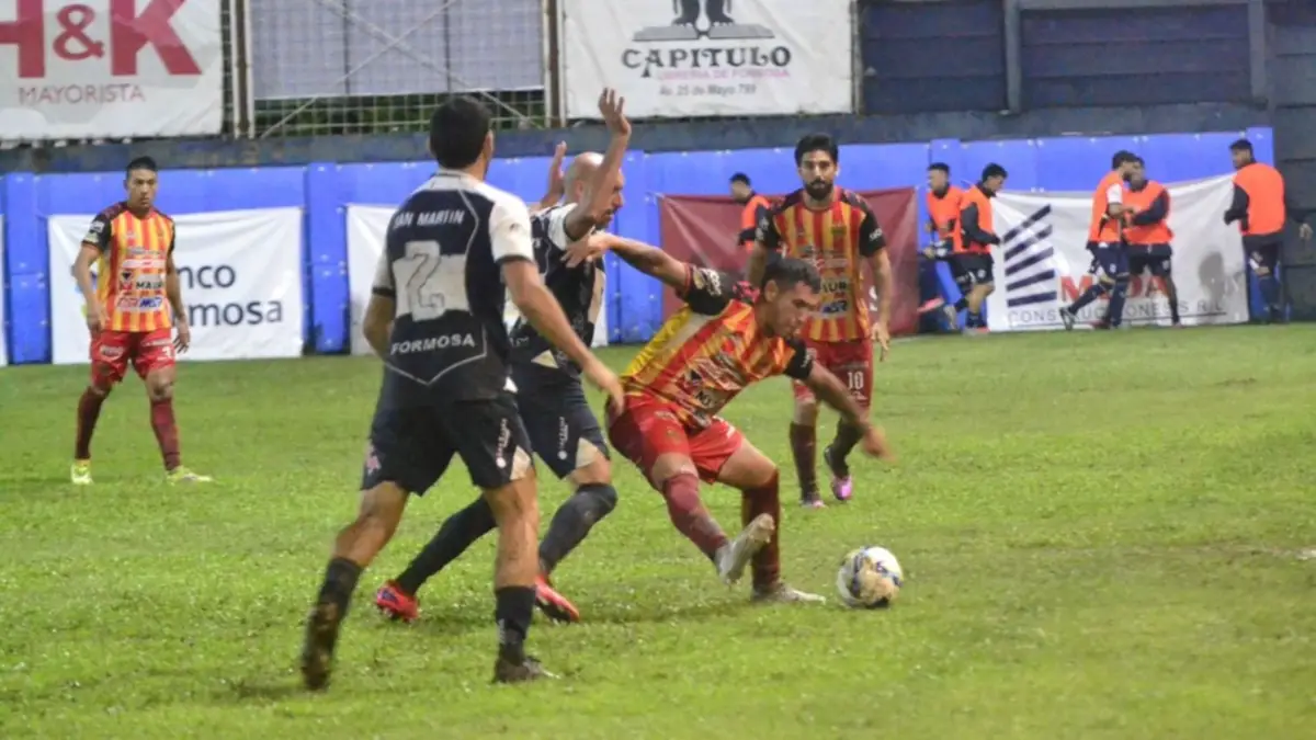 La igualada en la capital formoseña se dio en un partido atípico, por la cantidad de agua que se acumuló en el campo de juego del estadio 17 de Octubre.