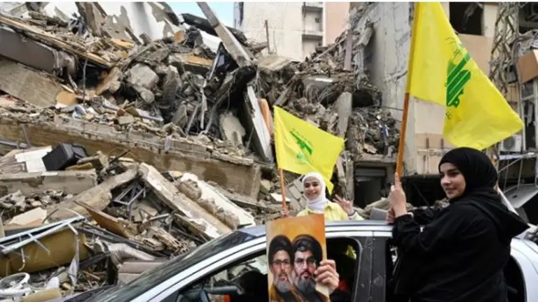 En los suburbios del sur de la capital, bombardeados hasta la madrugada del miércoles, militantes de Hezbollah circulaban en moto ondeando las banderas amarillas del partido y gritando eslóganes ensalzando a Hassn Nasrallah, su emblemático líder muerto a finales de septiembre en un ataque israelí.