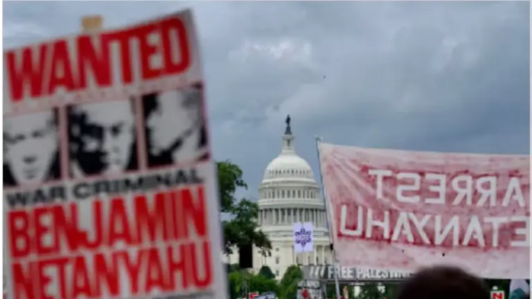 Mientras fuera del Capitolio norteamericano se producían violentos choques entre manifestantes pro palestinos y la policía, el primer ministro israelí, Benjamin Netanyahu, defendió este miércoles su ofensiva en la Franja de Gaza y pidió a Estados Unidos que acelere la ayuda militar
