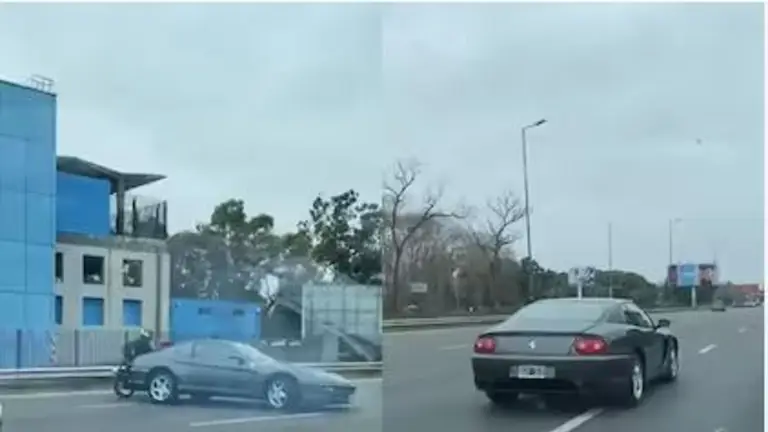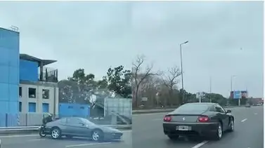 Un video que se viralizó en redes sociales muestra desde otro auto cómo la Ferrari 456 GT, modelo 1997, viajaba por uno de los carriles centrales. De pronto, acelera, parece salirse de control hace un trompo y, por sus deslizamientos a lo largo de toda la autopista, estuvo a punto de ocasionar una colisión.
