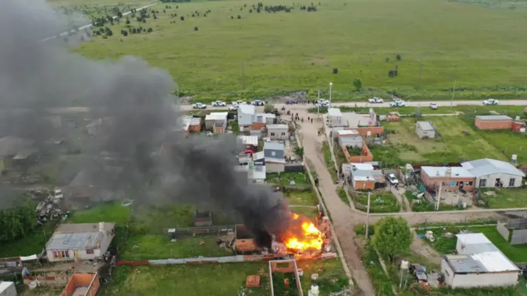 Mar del Plata. Así incendiaban la casa del niño acusado de manosear a compañeras. Foto: gentileza Pablo Funes @dronmardelplataMar del Plata. Así incendiaban la casa del niño acusado de manosear a compañeras. Foto: gentileza Pablo Funes @dronmardelplata