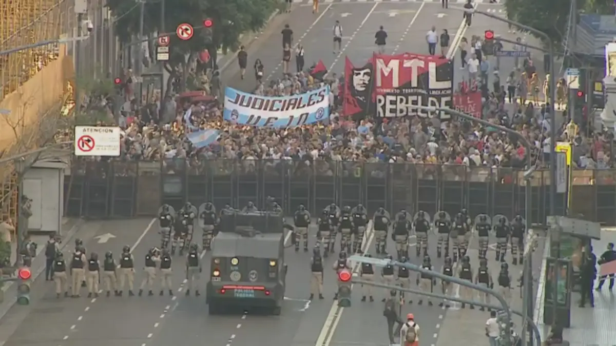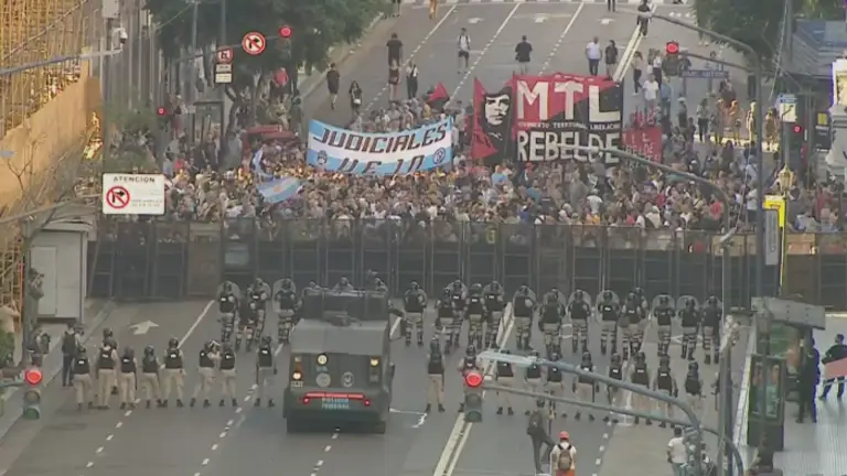 A lo largo de toda la manifestación se notó la presencia de adultos mayores. La represión de la última protesta no los desalentó a salir nuevamente. “Vengo desde Ensenada, me tomo el tren y dos colectivos. Muchas veces vi a la Policía tirando gas, vi como a la gente la arrastraban por el piso. Esto no nos hace bien a la salud, pero no damos más. Me sacaron medicamentos, vas al PAMI y es un desastre. Yo gano 340.000 pesos”, contó Silvia, de 79 años, quien protestó pegada a la valla durante varias horas.