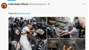 El músico Carlos Alberto “El Indio” Solari compartió imágenes de la última marcha de jubilados al Congreso de La Nación en donde las fuerzas de seguridad no sólo detuvieron al Padre “Paco” Olveira, sino que además, resultó herido.