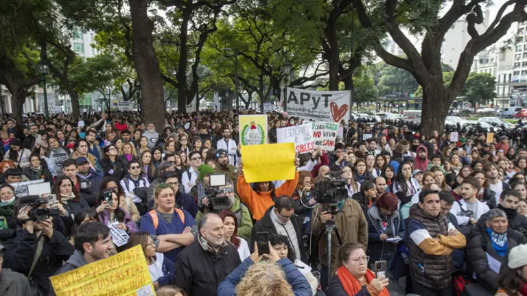 "La idea es continuar demostrando nuestra unidad", dijo a este diario Guillermo, uno de los convocantes de la movilización. "Nuestro trabajo es muy importante y buscamos un salario digno porque lo merecemos. Hicimos ceses de actividades durante dos semanas, después una marcha que fue multitudinaria, y ahora invitamos a quien quiera sumarse", sostuvo y aseguró que "quien no pueda venir porque vive en otra provincia, o le queda a contramano o trabaja en ese horario", puede adherir a través de las redes-- en 'asamblearesidentesgarrahan' en Instagram, 'resisgarrahan' en X y 'residentes.garrahan" en TikTok'-- con una foto con una vela, una linterna o un corazón violeta que simboliza los colores del hospital.