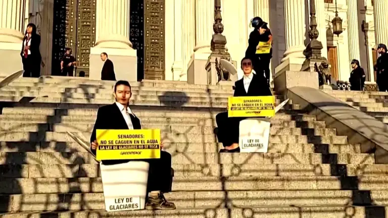 Detuvieron a activistas en el Congreso que protestaban contra el proyecto de cambios en la Ley de Glaciares. Los manifestantes, de Greenpeace, saltaron la reja del Palacio Legislativo y se pronunciaron en la explanada, sentados en inodoros, en rechazo al proyecto que el oficialismo quiere darle media sanción, hoy en el Senado.