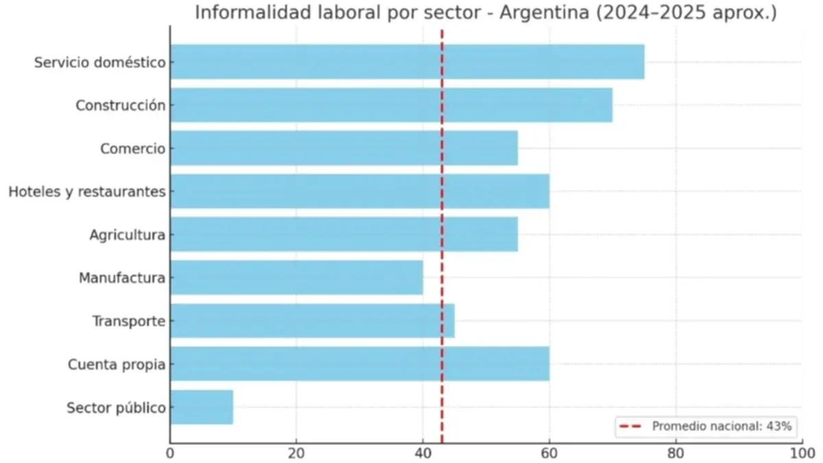 · El índice de informalidad laboral en Argentina presenta diferencias notables según el grupo etario. Los jóvenes, especialmente aquellos entre 18 y 24 años, son el segmento más afectado, con niveles de informalidad que pueden superar el 60%. En contraste, los trabajadores mayores de 45 años tienden a registrar una menor incidencia, aunque todavía significativa, con cifras próximas al 35%.