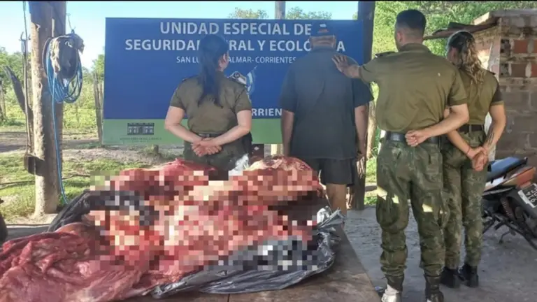 Personal de la Unidad Especial de Seguridad Rural y Ecológica de San Luis del Palmar interceptó una camioneta en un control montado en el cruce de las rutas provinciales Nº 5 y Nº 91, en la cual transportaban 70 kilos de carne de una faena clandestina.