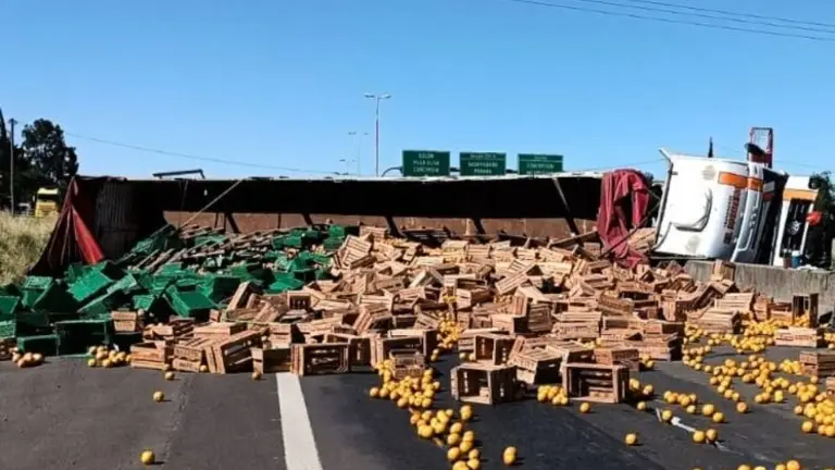 Según relató el conductor de un Volkswagen 19-320 , con semi que iba cargado con cajones de naranjas, se vio obligado a realizar una brusca maniobra al advertir que se desprendieron dos ruedas de otro camión que circulaba en sentido contrario.