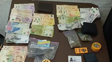 Por tal motivo se procesio a demorarlos y entre sus pertenencias encontraron una riñonera con varios envoltorios, dinero en efectivo, documentaciones y 2 bolsas con marihuana.