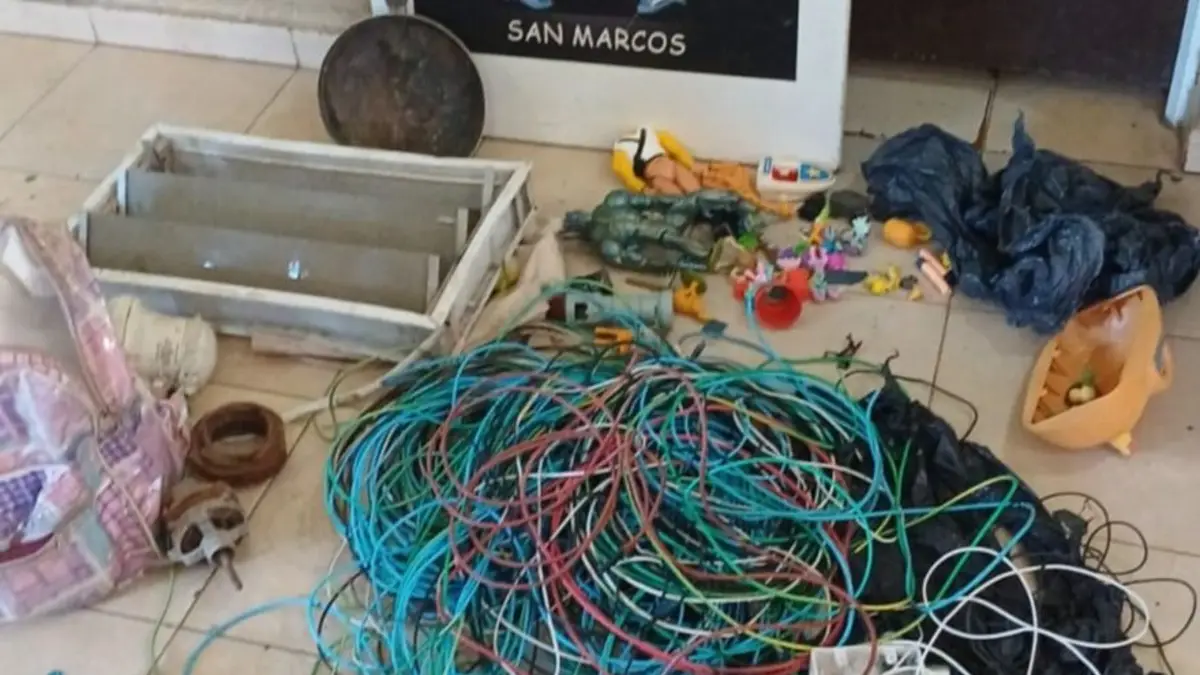 Al notar la presencia policial, los individuos intentaron darse a la fuga, arrojando en la vía pública diversos elementos de dudosa procedencia, entre ellos: cables de distintos calibres (1 mm, 2.5 mm, 4 mm y 6 mm, con un total de 100 metros), una sartén, una mochila, juguetes, y una ventana tipo ventiluz.