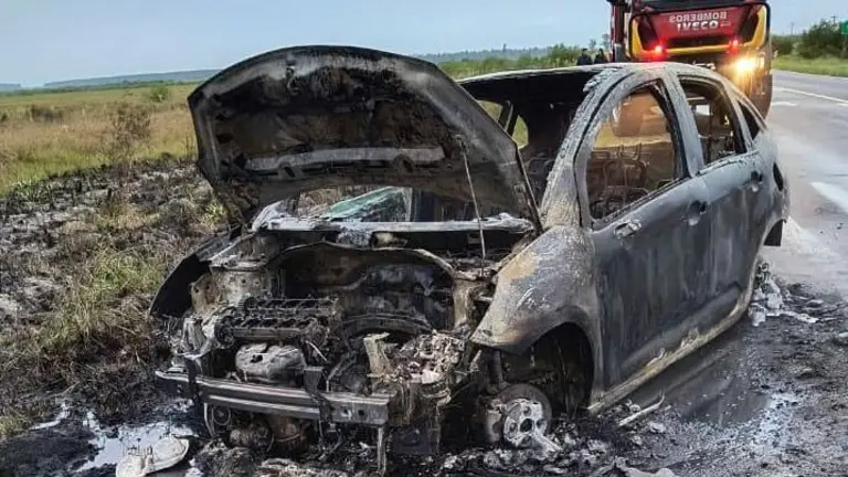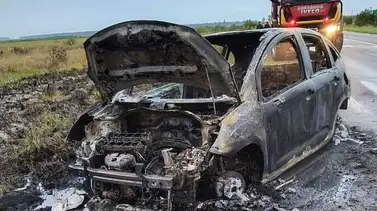 Tras el choque, el rodado se desplazó hacia la banquina y comenzó a incendiarse. Personal policial, Bomberos Voluntarios y brigadistas trabajaron en el lugar para extinguir las llamas, que también afectaron una zona de pastizales cercana.