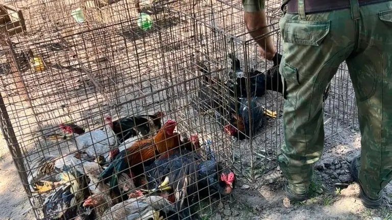 Entretanto, los policías procedieron al resguardo de 16 gallos, 17 gallinas, 13 pollitos, y 5 aves jóvenes.