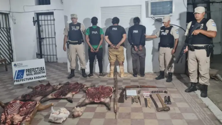 Tres hombres fueron interceptados en aguas del río Paraná, cuando se desplazaban hacia la ciudad de Esquina, con varias armas, tres carpinchos y un chivo faenados, en un operativo realizado por infracción a la ley de Fauna Silvestre.