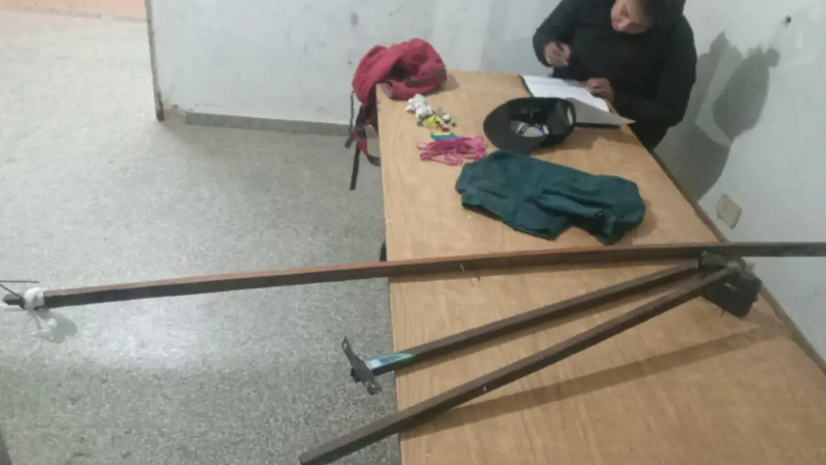 En inmediaciones del lugar se desplegó un rastrillaje que resultó en la localización de varios elementos abandonados en la vía pública: tres hierros estructurales, un reflector LED, prendas de vestir y un gancho de madera de fabricación casera.