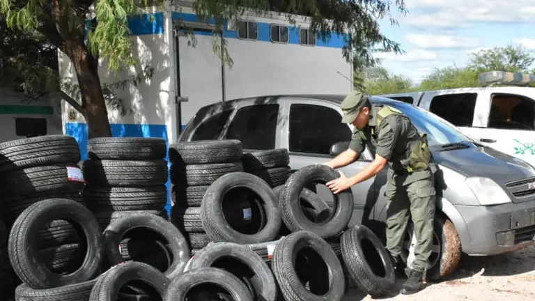 Al momento de requisar los autos, en presencia de testigos, personal de la Fuerza constató la existencia de 104 cubiertas, 24 pares de zapatillas y 23 pares de ojotas de origen extranjero, que no contaban con documentación legal.