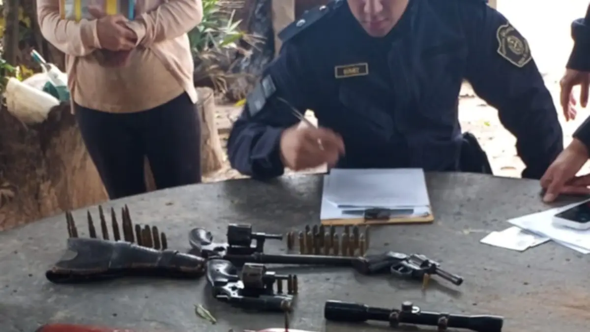 El procedimiento lo realizaron en el domicilio de un ciudadano identificado como E. E. Antonio, lugar donde hallaron un total de siete armas de fuego: cuatro armas largas, dos escopetas y dos carabinas, así como tres armas cortas, entre ellas dos revólveres.