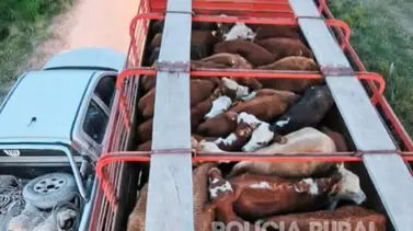 La Policía de Corrientes informó este domingo que interceptó un camión jaula Mercedes Benz rojo acompañado por una camioneta Toyota Hilux gris, ambos transportando ganado sobre la Ruta Provincial Nº49.