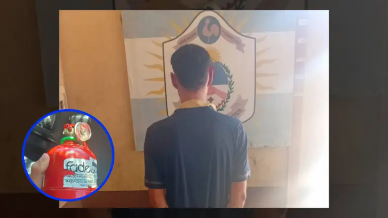 Al llamar la atención de los efectivos, se procedió a la entrevista e inspección del bolso, donde se encontraron un matafuegos, un cable de arranque y otros elementos que coincidían con la denuncia.