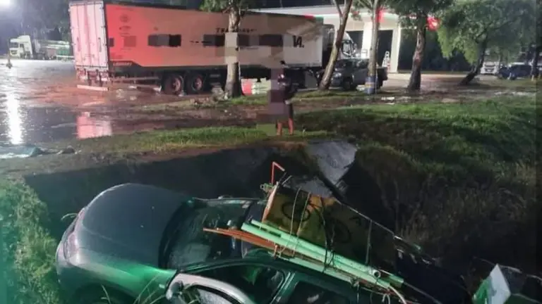 Cuatro personas ocupaban el automóvil. Si bien ninguna sufrió lesiones, los bomberos tuvieron que asistir a uno de los ocupantes, que no podía salir por sus propios medios debido a la ubicación del vehículo.