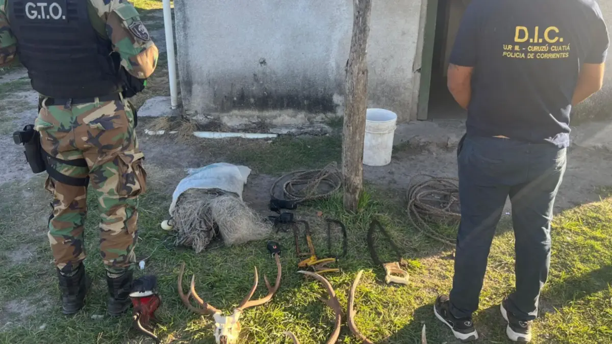 En uno de los domicilios secuestraron una cabeza de ciervo y cuatro astas, dos lazos, tres sierras para cortar carne, balanza digital, dos radios handy con sus correspondientes cargadores, una red de pesca, y una picadora de carne.