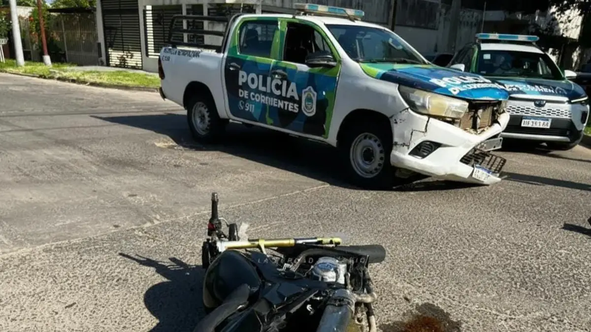 Un siniestro vial ocurrido en la mañana de este jueves dejó dos personas heridas tras el choque entre un patrullero de la Policía de Corrientes y una motocicleta.