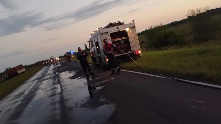El hecho se registró alrededor de las 3:30, sobre la Ruta Nacional 12 cerca del kilómetro 925. Según el informe de la Comisaría de Distrito Segunda, los vehículos involucrados fueron un camión marca Iveco, en el que viajaban dos personas, y un camión Volkswagen, conducido por un hombre mayor de edad, cuya identidad no fue trascendida.