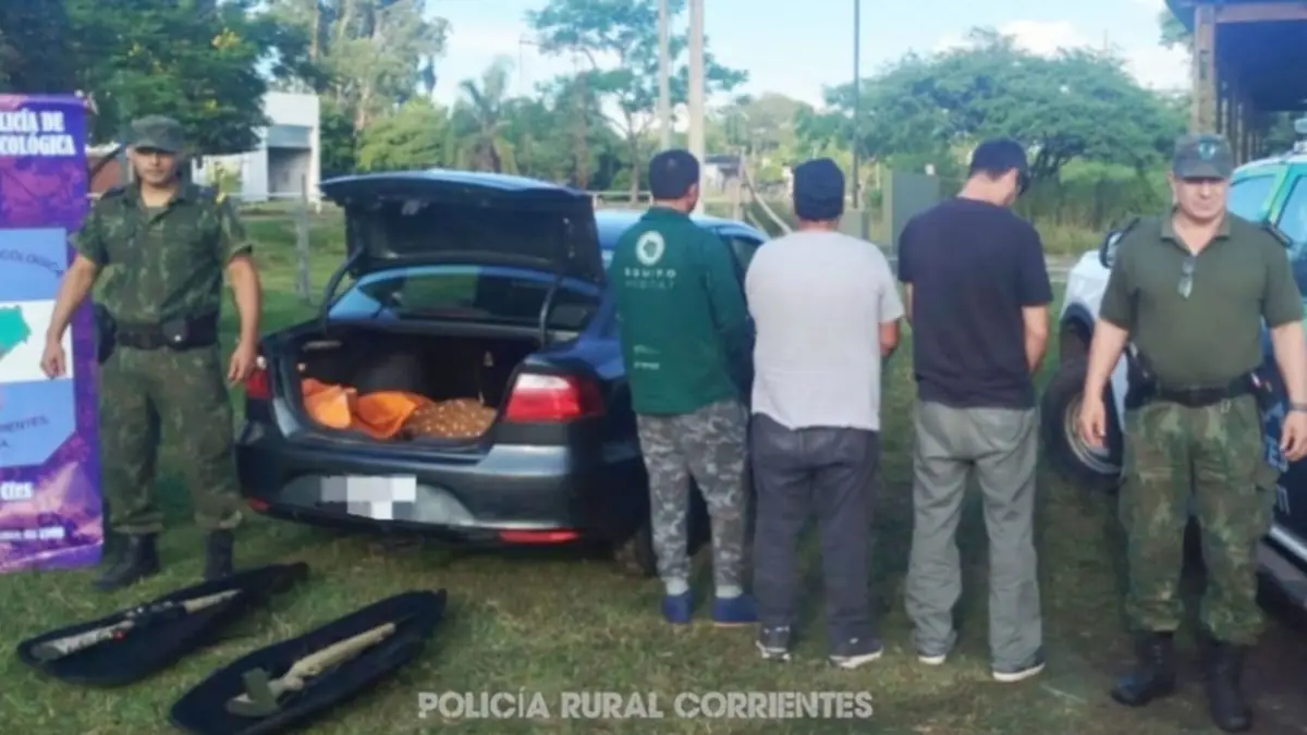 Al identificarlos, constataron que se trataba de tres hombres mayores de edad, oriundos de la provincia del Chaco, quienes transportaban dos rifles, cuchillos, una mochila y un ciervo axis, que aparentemente habría sido cazado momentos antes.