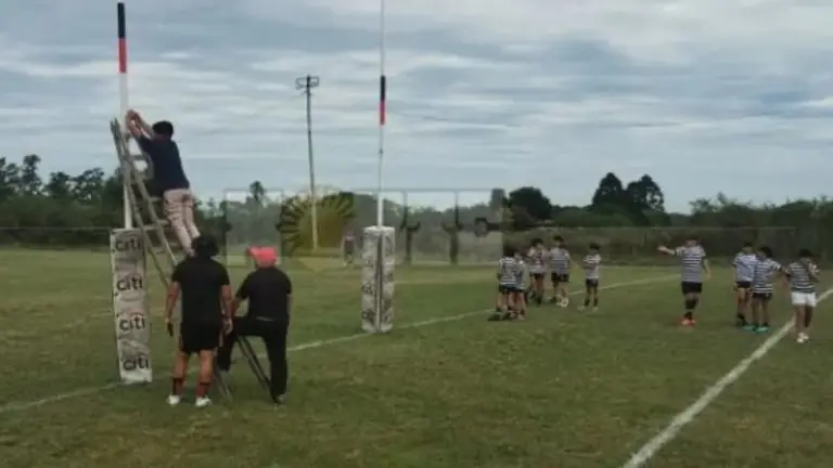 Un niño de 10 años sufrió una lesión leve luego de que se desprendiera parte de la estructura de un arco de rugby en el Club San Patricio.