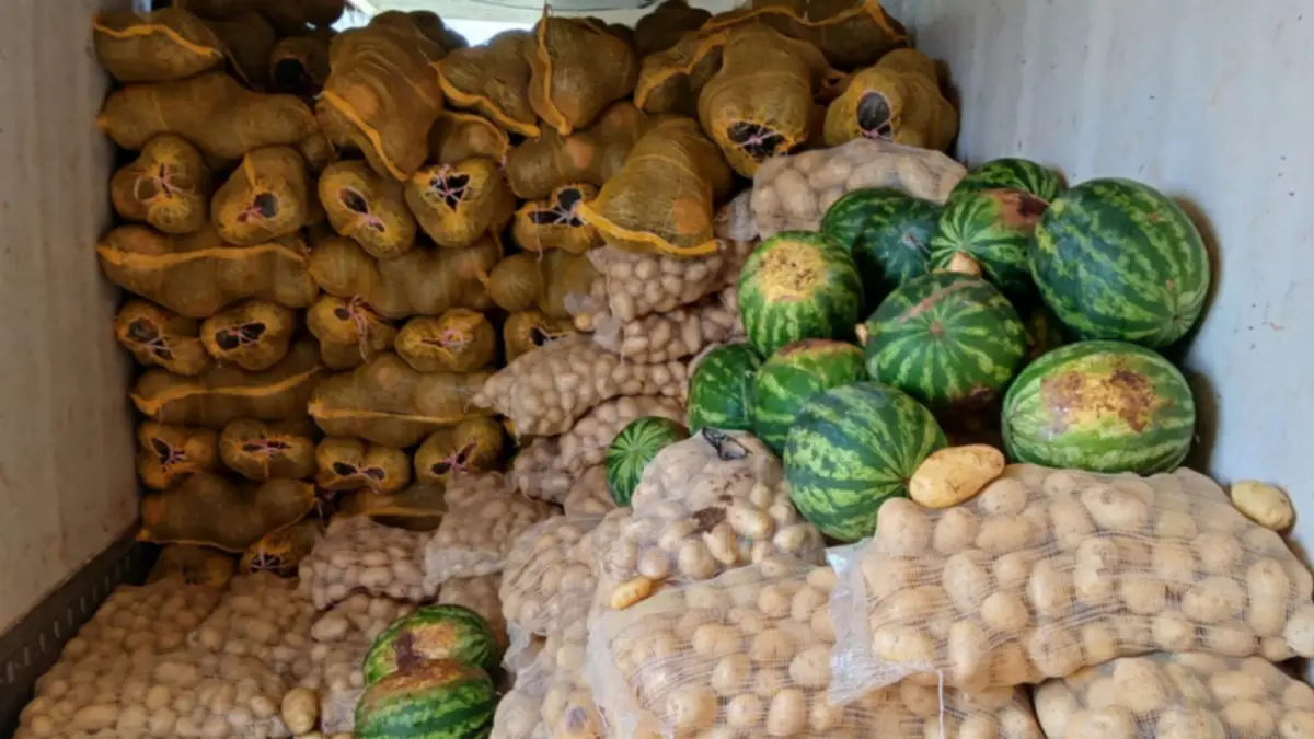 Entre los productos transportados se encontraban mango, papaya, banana, melón, papa, sandía, zapallo, lima Tahití, durazno, ciruela, kiwi y pimiento morrón.