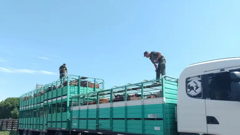 Los efectivos detuvieron la marcha de un camión Scania cuyo conductor no contaba con la documentación obligatoria exigida por ley para el transporte de hacienda en ruta, según detallaron.