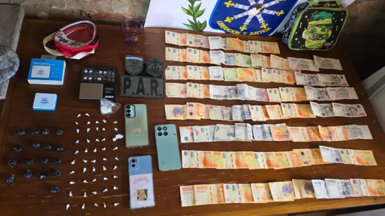 Asimismo, los efectivos procedieron al secuestro de una balanza de precisión, recortes de polietileno, la suma de 110.600 pesos en efectivo, cinco teléfonos celulares y un dispositivo de cobro electrónico.