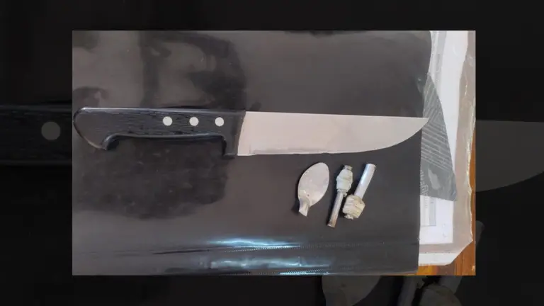 Tras la demora, los efectivos hallaron entre sus pertenencias un cuchillo de aproximadamente 20 centímetros de hoja. El sujeto no pudo justificar su presencia en el lugar ni la tenencia del arma blanca.