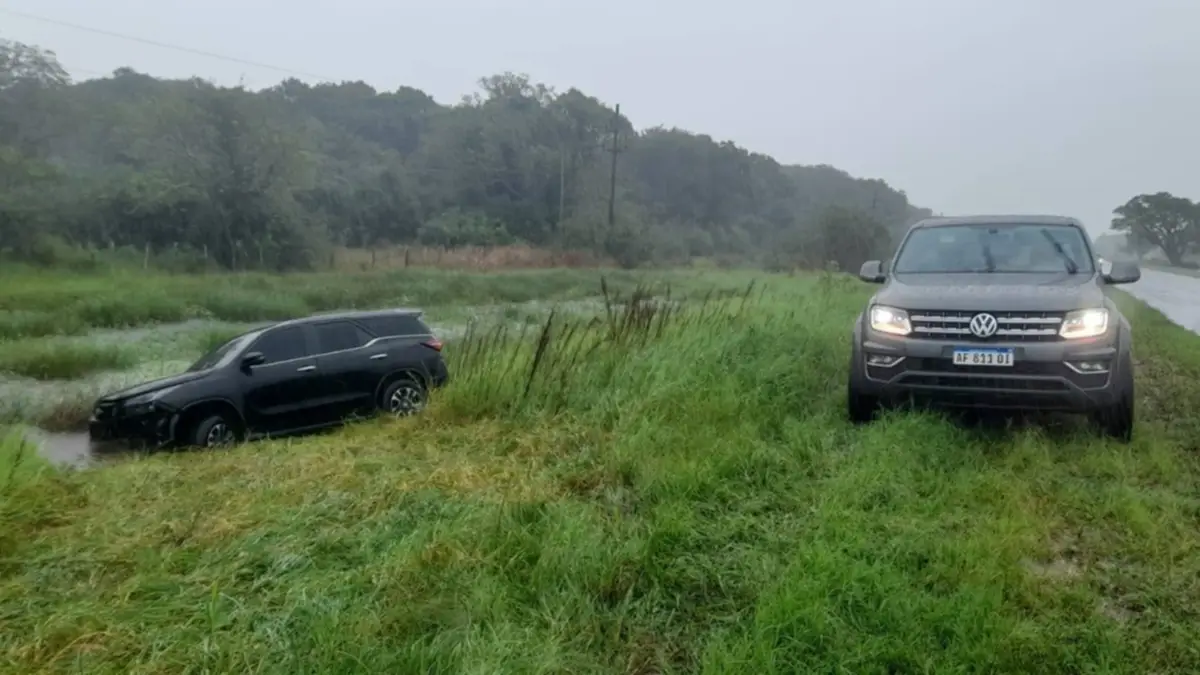 Tras el impacto, el vehículo de menor porte perdió el control y quedó a escasos metros de un canal de desagüe, mientras que el rodado del funcionario terminó varios metros dentro de la banquina, entre los pastizales.