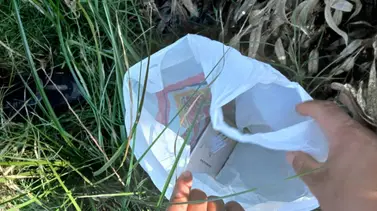 Las tareas de campo permitieron localizar el dispositivo -un Samsung de color plateado- el cual se encontraba oculto dentro de una bolsa de nylon, camuflado entre arbustos a escasos metros de la vivienda del afectado.