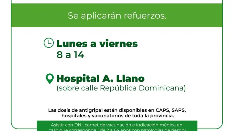 Asistir con DNI, carnet de vacunación e indicación médica en caso que corresponda (de 2 a 64 años con patologías de riesgo).